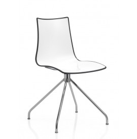 ZEBRA base a trespolo sedia riciclabile dall'accostamento di due superfici. Scocca bicolore in polimero con parte "seduta" interna bianco lucido, parte esterna "retro" con superficie lucida sfaccettata in 4 varianti colore . Base a Trespolo Struttura in tondino d’acciaio Ø mm 11 cromato. sedia uso interno, USO CONTRACT ![]()