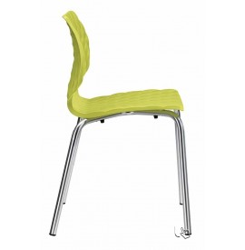 Telaio in acciaio Finitura Cromata, la scocca in Polipropilene (PP) riciclabile stabilizzato per resistere ai raggi U.V.A. - sedia antimacchia ed antigraffio, sedia design, impilabile fino ad otto pezzi.