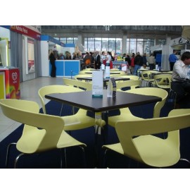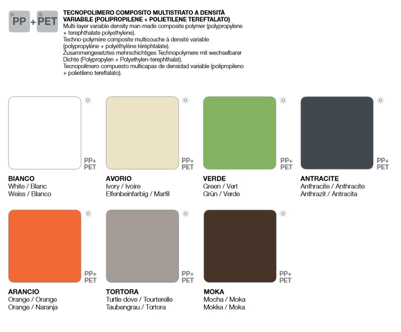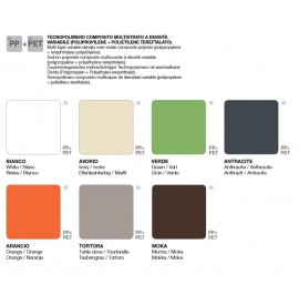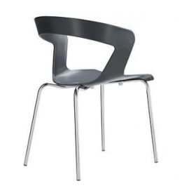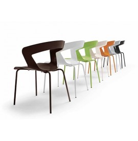Poltroncina con braccioli in tecnopolimero bianco, avorio, verde, antracite,arancio,tortora e moka. Telaio 4 gambe in tubo d'acciao verniciato nei colori bianco, nero oppure cromato.