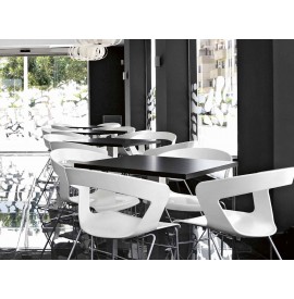 IBIS 002 tecnopolimero sedia con braccioli telaio cromato, verniciato bianco o nero, casa ufficio caffè ristorante hotel