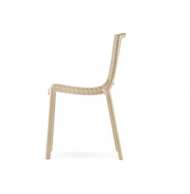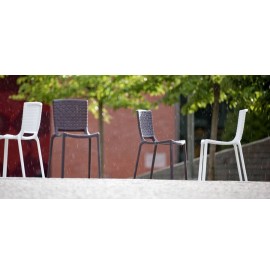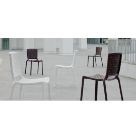 Sedia in realizzata polipropilene ad alta tecnologia,robusta e leggera,seduta e schienale con effetto intrecciato.Resistente ai raggi UV è adatta ad un uso in esterno.Disponibile nei colori bianco, rosso, marrone, verde, grigio antracite o sabbia.
