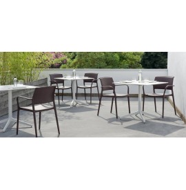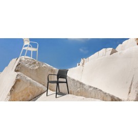 ARA 315 Poltroncina in polipropilene caricato con fibra di vetro, adatta sia per indoor che outdoor. La struttura dello schienale forma nella parte alta una grande maniglia che ne facilita il sollevamento e lo spostamento e le conferisce un distinto carattere. Grazie alla forma affusolata delle gambe appare leggera ed elegante, pur essendo robusta e indeformabile. Impilabile.