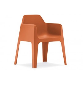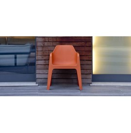 Poltroncina realizzata in polipropilene,pratica e funzionale dal design semplice e pulito.Resistente ai raggi UV e all'acqua, è adatta ad un uso in esterno.Disponibile nei colori bianco, antracite,sabbia, marrone ,verde e arancio.Per contract,bar, ristoranti,hotel.