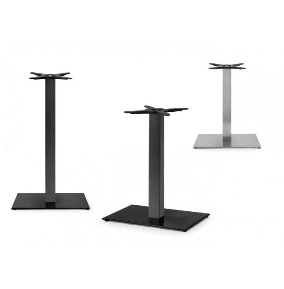 Base rettangolare con colonna quadrata in acciaio inox satinato disponibie anche nella versione in acciaio inox lucido o verniciato nero. Solo per uso interno.