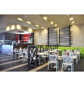 Base quadrata con colonna quadrata in acciaio inox satinato. Un materiale molto resistente ideale nei luoghi molto frequentati.