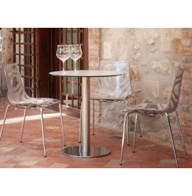 Base rotonda con colonna tonda in acciaio inox satinato o acciaio inox lucido, un materiale molto resistente alle forti sollecitazioni ed alle alte temperature. Adatto per uso interno.