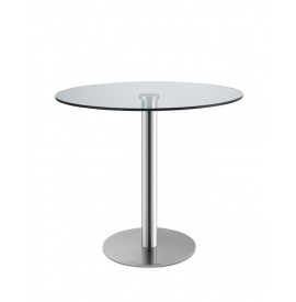 Base per piano in vetro, con colonna tonda in acciaio inox satinato o acciaio inox lucido, un materiale molto resistente alle forti sollecitazioni ed alle alte temperature. Adatto per uso interno.