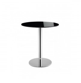 La base è zavorrata e dotata di piedini fissi. Si possono abbinare ESCLUSIVAMENTE piani in vetro, max ø 90 cm.