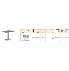 Base tavolo in acciaio inox  AISI 304 18/10 - Stainless Steel , lucido o satinato, h cm 72, colonna cm 8x8 , base cm 50x50. ideale per la tua attivita di bar o Chalet Ristorante sul mare.