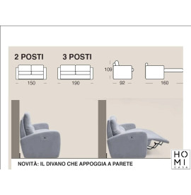 Divano Relax elettrico Mediterraneo cm 155 a 2 Posti o 3 Posti cm 195 alto cm 110 in tessuto o pelle