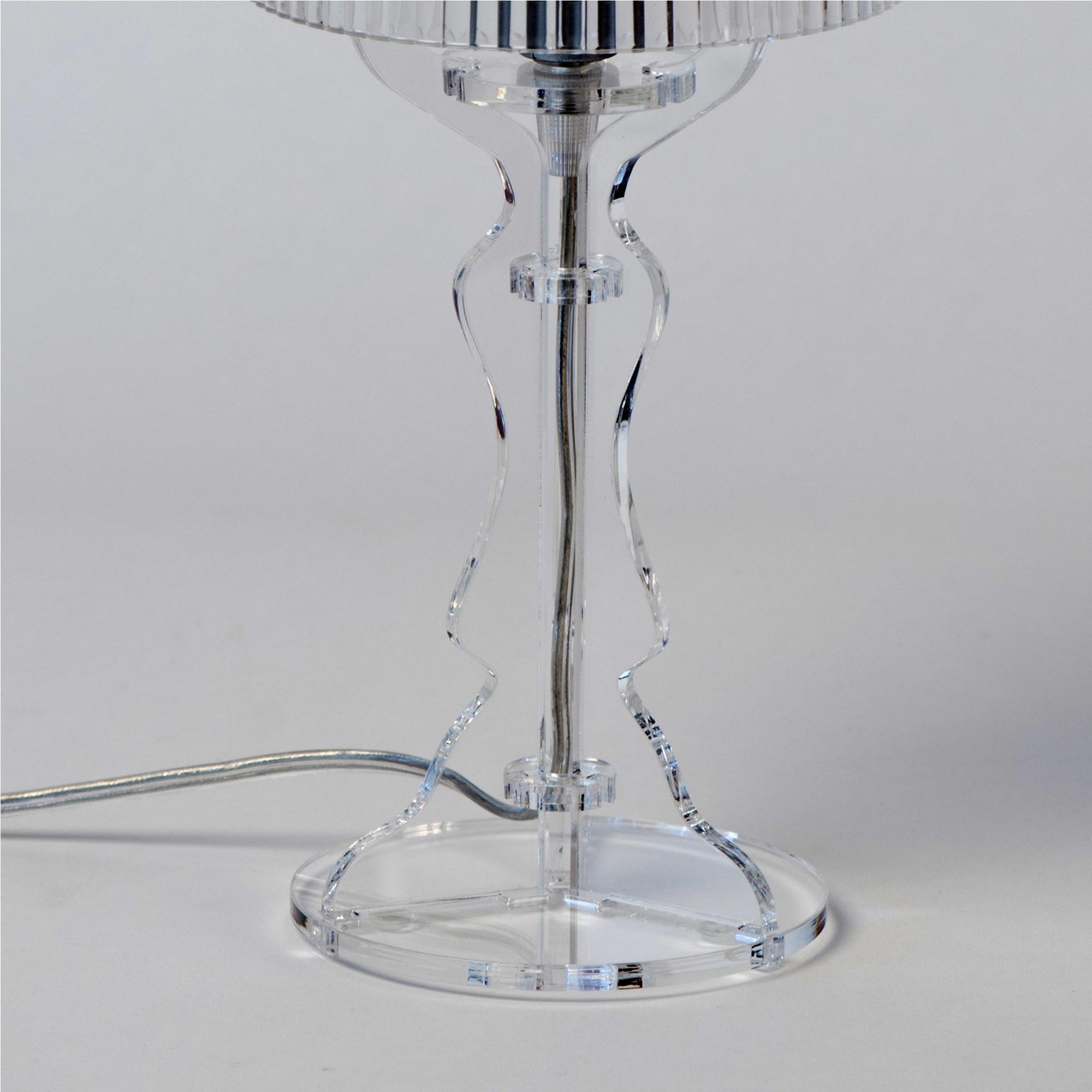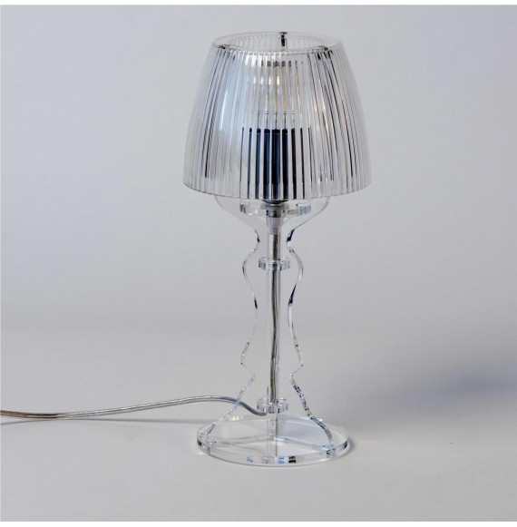 Lampada con filo piccola Led da tavolo o comodino tutta in plexiglass. Struttura in cristallo acrilico trasparente e paralume in vari colori : trasparente,fumè,fucsia,bianco,giallo,blu,verde,rosa e rosso.