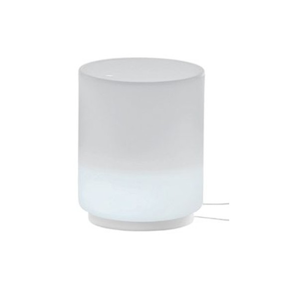 Originale tavolino-contenitore luminoso in polietilene bianco,per illuminare zone relax o d'attesa.Adatto solo per utilizzo interno.All'interno una comoda presa per ricaricare cellulari e apparecchie elettronici. Lampadina a risparmio energetico INCLUSA