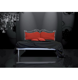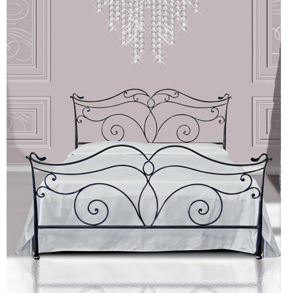 Letto ATHENE matrimoniale in ferro dallo stile raffinato, lavorato artigianalmente in Italia. Qui è proposto nella versione con testata e pediera, le misure sono  cm 176 x 202,  la testata è alta cm 125.