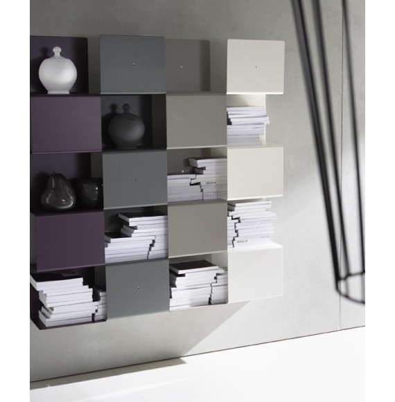 SNAKE liberia componibile formata da lamina in metallo sagomato in finitura laccato opaco.