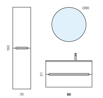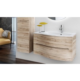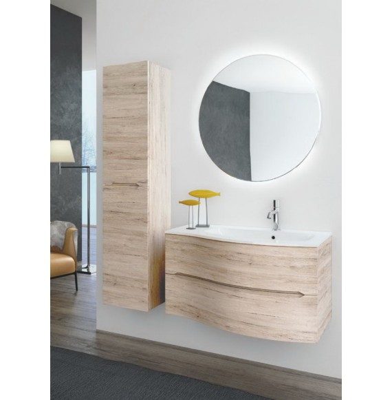 La composizione qui proposta comprende un mobile portalavabo sagomato con 2 cassettoni rivestito in polimerico colore "ROVERE NODI", un lavabo ad 1 vasca in mineralmamo, 1 specchiera rotonda con retroilluminazione a led e 1 colonna sospesa.MISURE:- mobile con lavabo L. cm 90 x 37/42,5 cm- colonna sospesa L. cm 35 x 30, h cm 160- specchiera rotonda diametro cm 80Disponibile anche il mobile portalavabo nella misura di cm 120. La versione nella foto è nella finitura polimerico "ROVERE NODI", sono disponibili altre finiture:- LARICE BIANCO - ROVERE THERMO- ROVERE GRIGIO - BIANCO LUCIDO- TORTORA LUCIDO - TEAK SABBIATO