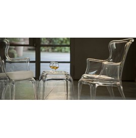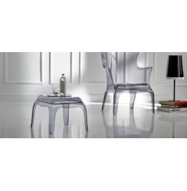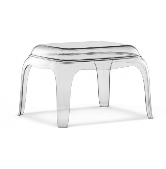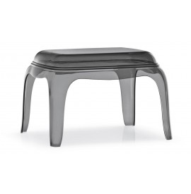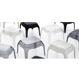 Pouf o tavolino realizzato in policarbonato da abbinare alla sedia PASHA 660 o da utilizzare come elemento d'arredo singolo.Disponibile nei colori full color: bianco e nero e nei colori trasparenti: trasparente,fumè trasparente.Adatto per l'esterno tranne che nel colore nero. Come accessorio è possibile avere il comodo vassoio in melamina. art. PASHA 662