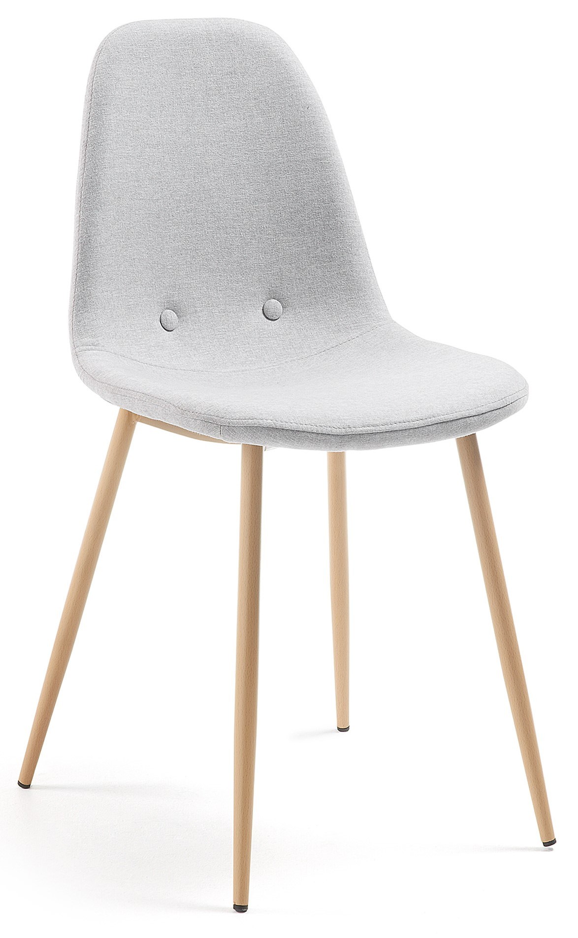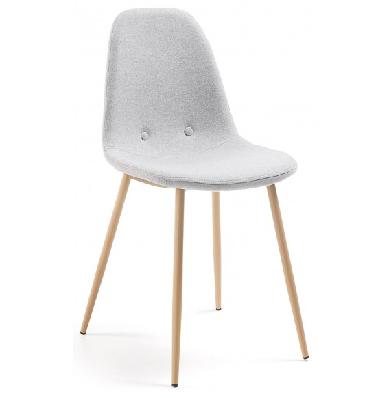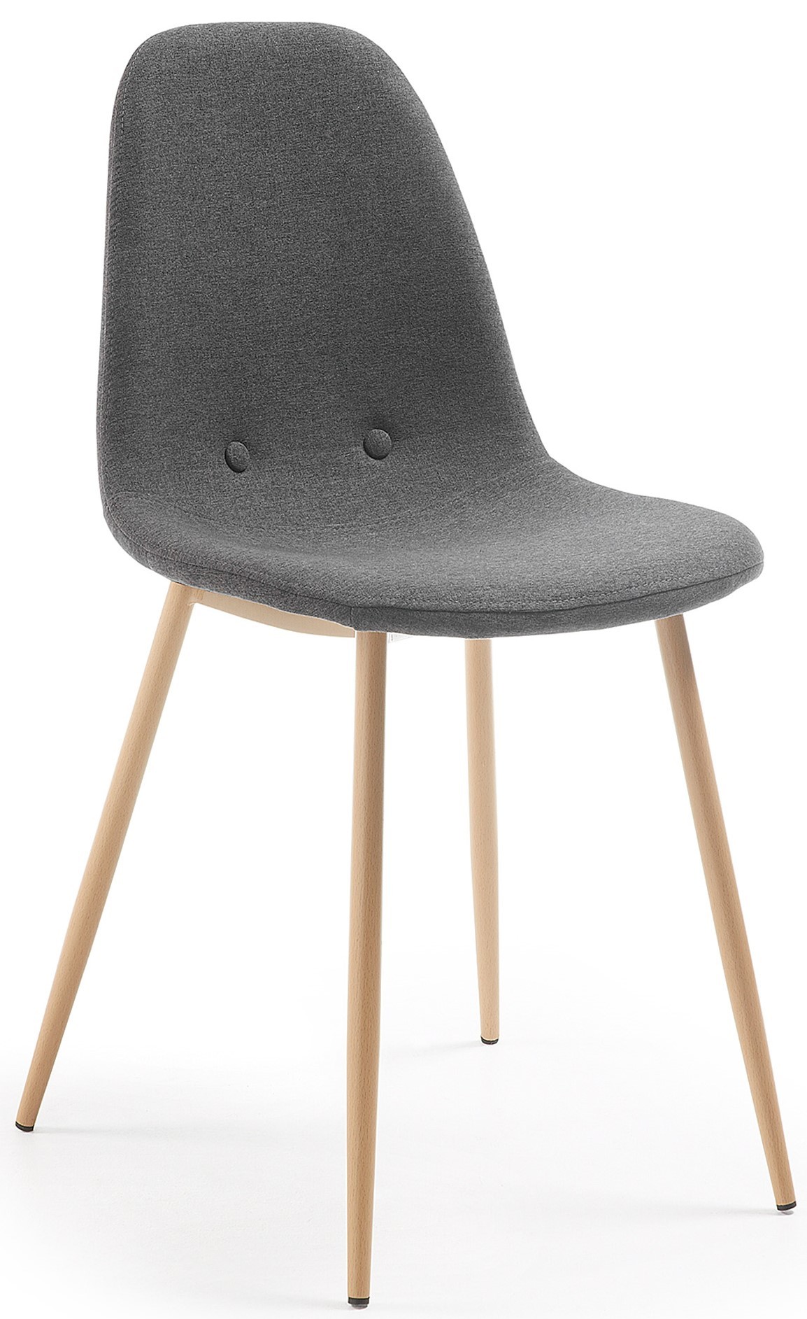 COSMOS sedia in tessuto grigio o giallo, piedi in metallo rivestito in effetto legno faggio naturale, Cucina, Sala da pranzo.