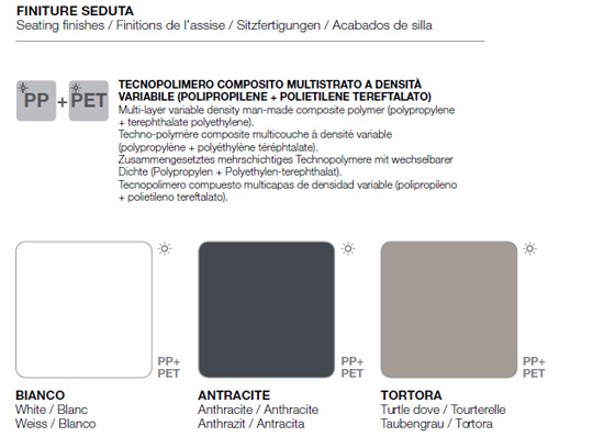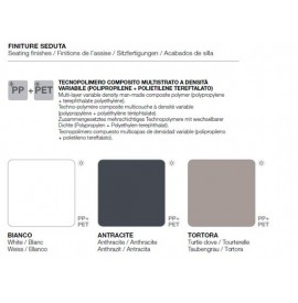 Sedia di design in tecnopolimero disponibile nei colori bianco, antracite, tortora. Basamento girevole in acciaio cromato o verniciato nei colori bianco, nero e grigio.