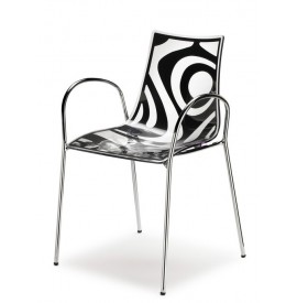 WAVE Sedia riciclabile caratterizzata dall'accostamento di una superficie trasparente con una lucida. Scocca in Tecnopolimero Trasparente + Colore . Struttura in tondino d’acciaio Ø mm 11 cromato lucido. Impilabile, sedia uso interno ed USO CONTRACT ![]()