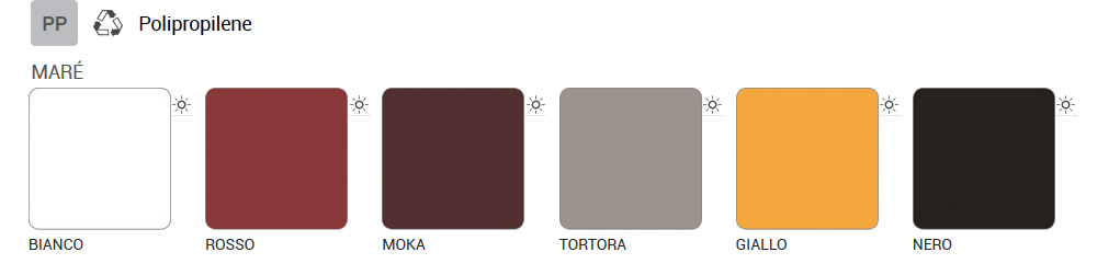 Maré nasce dal matrimonio di due materiali diversi e mai così complementari: il polipropilene della seduta e dello schienale con l'alluminio della struttura tubolare. Insieme in un solido costrutto che rende l'uno indispensabile all'altro, legati da una geometria strutturale unica (modello depositato) per un prodotto interamente riciclabile. Il design essenziale e raffinato, al di sopra di mode o tendenze effimere, rende Maré un prodotto trasversale rispondente ai diversi codici estetici dell'outdoor europeo ed internazionale.