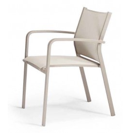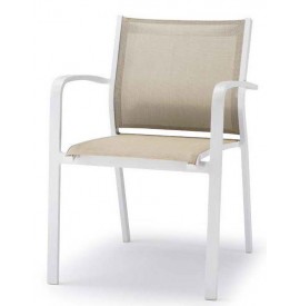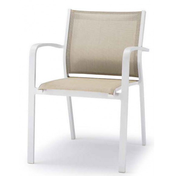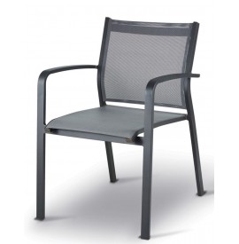 Sedia impilabile con braccioli realizzata in alluminio, seduta e schienale in textilene.