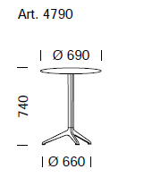 - h. 74 cm, per piani max ∅ 70 cm o 60x60 cm;